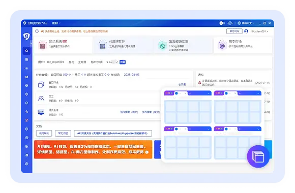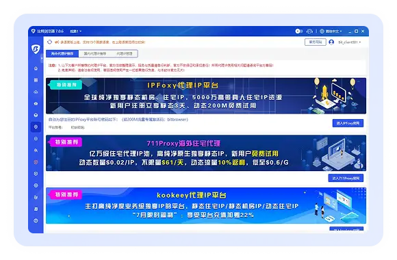 比特浏览器提供代理资源中心,让没用实用过程中体验不同的代理网络品牌商。自动匹配代理数据,批量识别代理数据上传、更改、适配等。此项Multilogin是不做支持的功能。