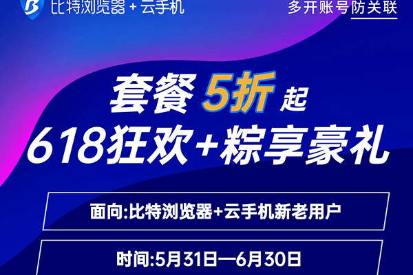当盛夏的618购物狂欢与端午粽香相遇,比特浏览器与比特云手机为您献上年度最强优惠!无论是提升数字安全,还是解锁云端高效办公,现在正是最佳时机——​​套餐低至5折​​,叠加限时折扣,助您轻松“粽”享科技红利。