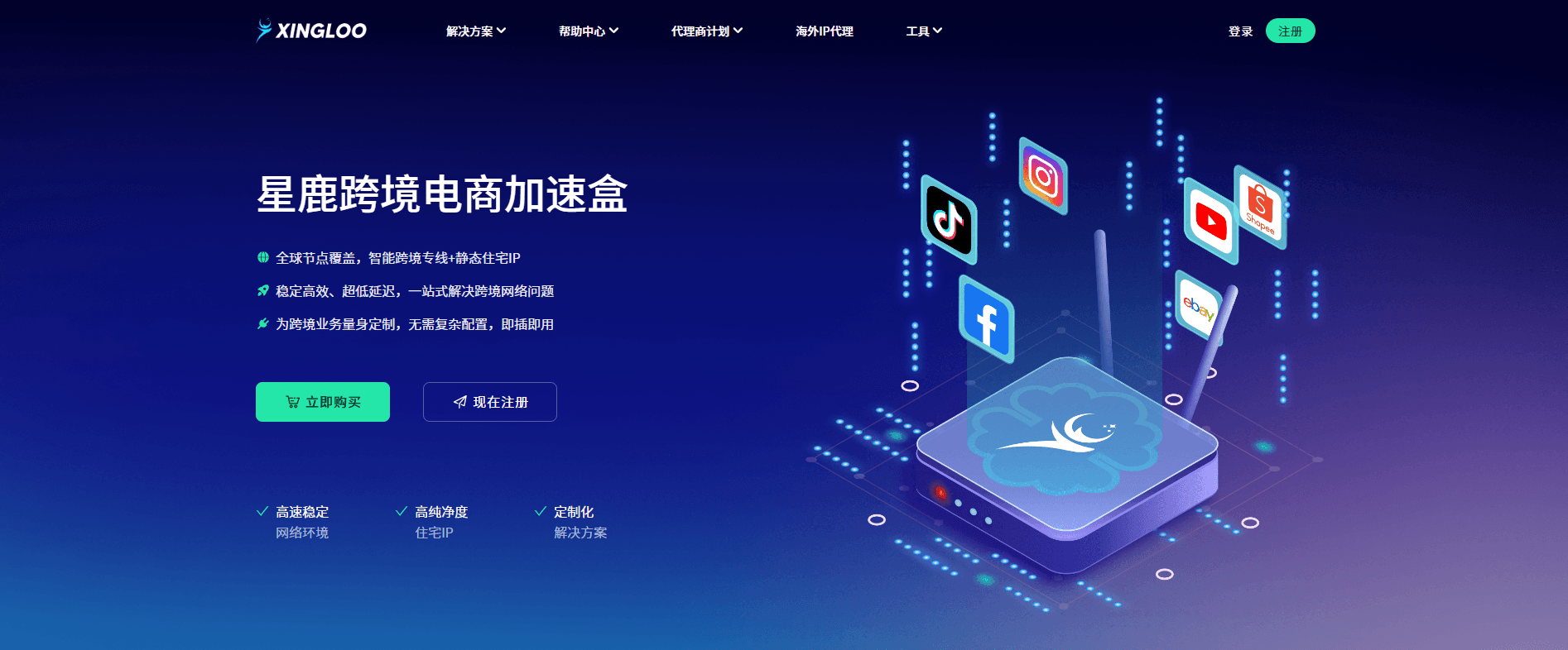 XINGLOO 是四川星途时动科技有限公司旗下,专注于提供全球跨境网络一站式服务的品牌,依托自有的全球高质量住宅IP资源与运营商跨境专线,XINGLOO成功打造出业内领先的星鹿跨境电商加速盒,融合全球网络资源,建立高性能、智能化的跨境网络生态系统。 基于自研的网络优化技术和深度定制化服务,XINGLOO已为数百家企业构建高效的全球连接方案,广泛适用于跨境电商/直播、社