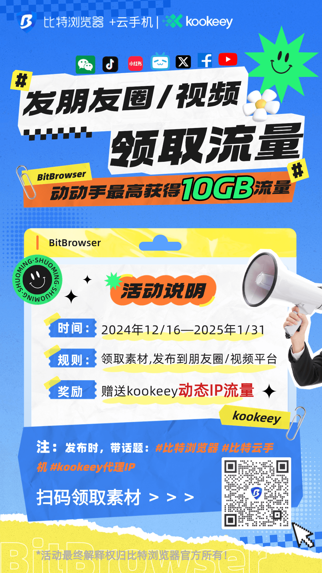 比特浏览器+kookeey代理年终福利:最高领10GB动态IP流量!!!