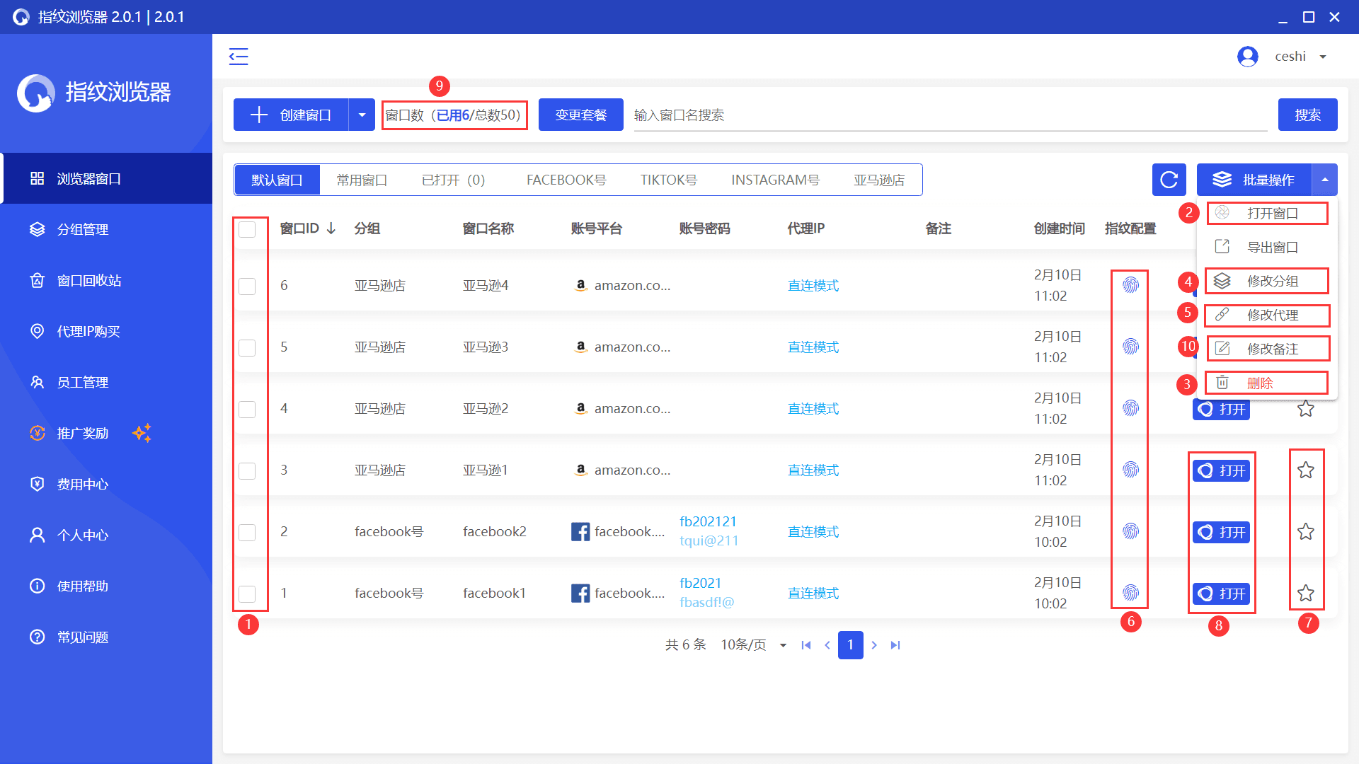 建议每个浏览器窗口单独配置一个代理IP、管理1个店铺或者账号; 以防止多个店铺、账号,同时登录到同一个浏览器窗口下,可能会造成关联封号、关联降权等风险!